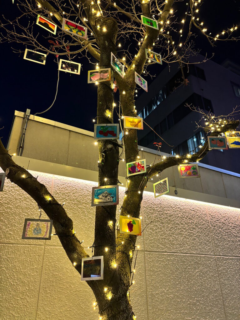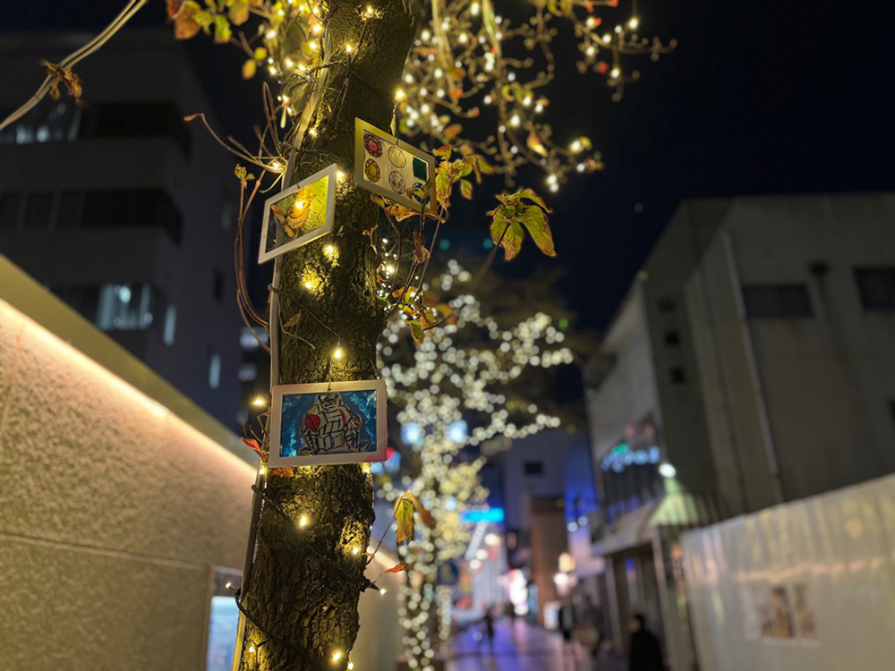令和8年2月15日(日)までの期間、子どもたちが製作した装飾品を、オリオン通りの街路樹に飾りつけるとともに、イルミネーションにより、まちなかを明るく彩っています。