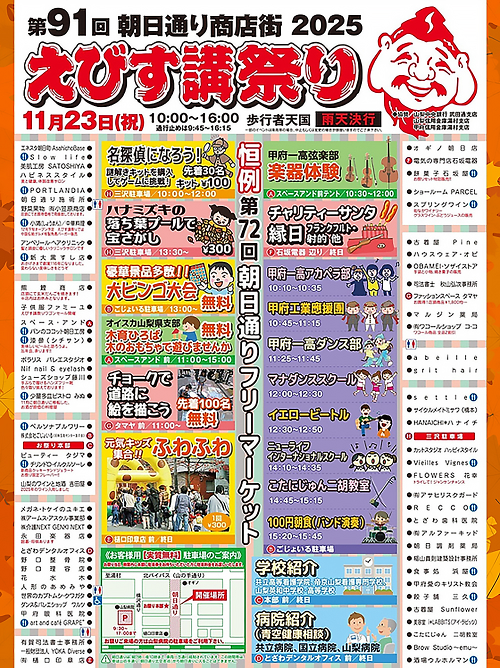 11月23日(日)、午前10時から午後4時まで、朝日通り商店街で「えびす講祭り」が開催されます!