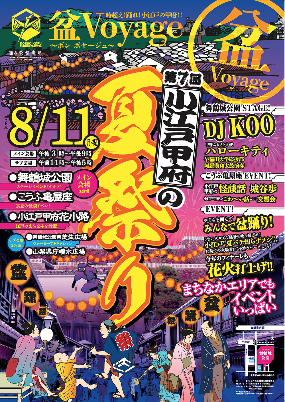 今年のテーマは、「時超え!踊れ!小江戸の甲府!!~盆 Voyage~(ボン ボヤージュ)です。